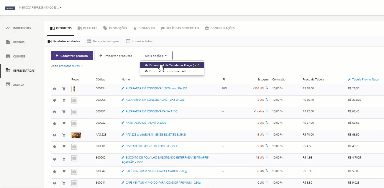 Em algumas situações é necessário ter em mãos a lista de preços e itens cadastrados na conta. No Mercos, é possível baixar essa tabela em formato PDF, com informações de nome, descrição e preço dos produtos.