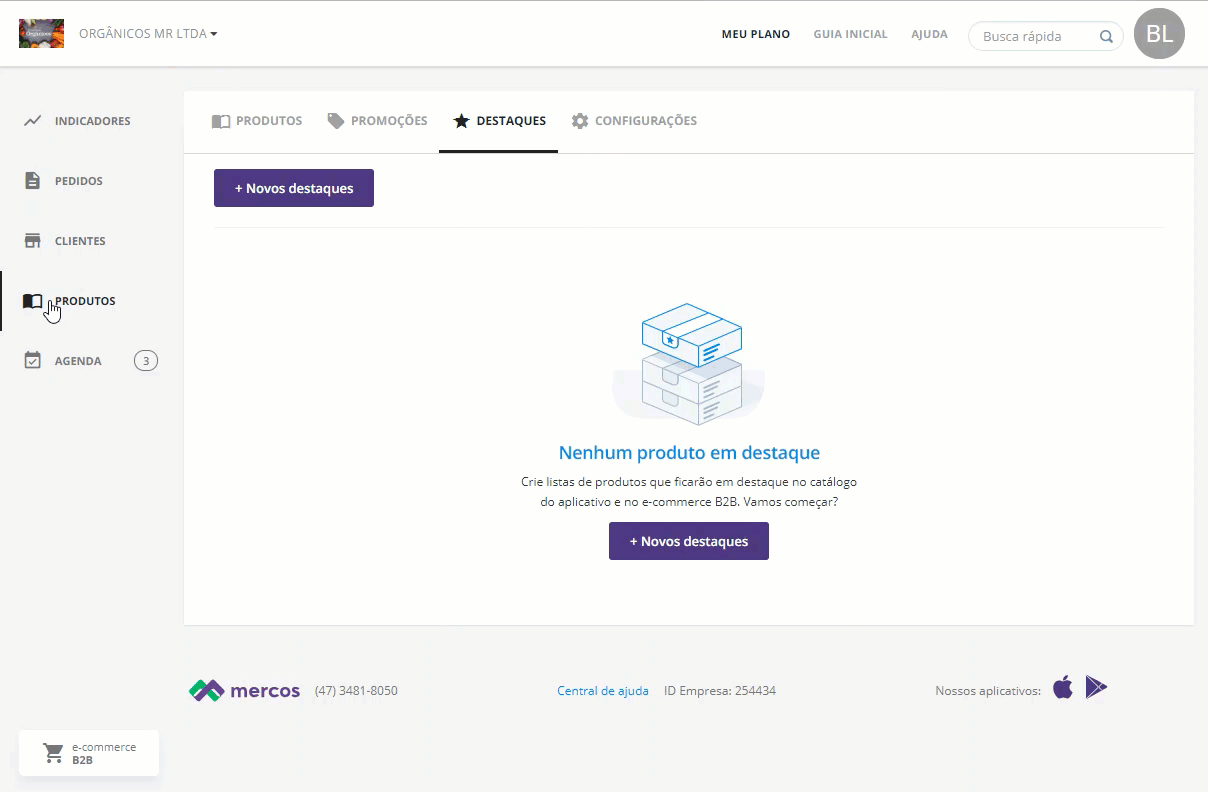 Se desejar remover, o processo é feito no painel de “Destaques”, basta clicar em “Excluir”.Pronto. Seus destaques estão cadastrados e ficarão visíveis no e-commerce B2B e para todos os vendedores na listagem de produtos ao gerar um pedido no aplicativo.