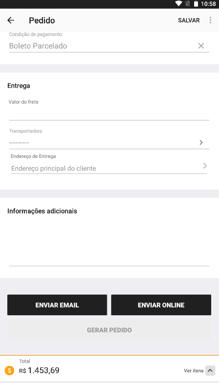 Quando o vendedor emitir um pedido acima do limite de crédito do cliente, o sistema vai exibir uma mensagem avisando que o cliente não possui limite disponível para realizar aquela compra e o pedido não será enviado para o sistema online.