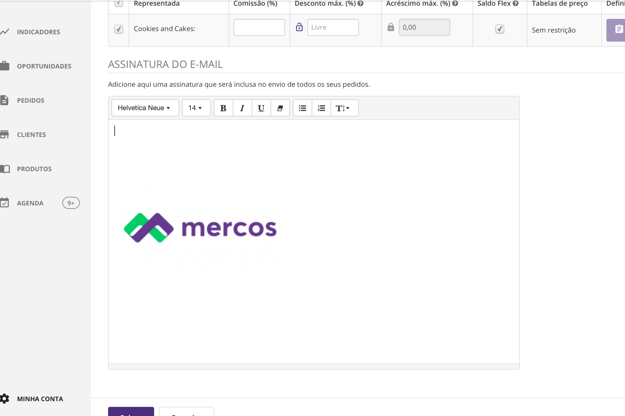 3. No sistema Mercos, vá até a página onde você configura sua assinatura, e aperte "Ctrl" + "V" para colar a imagem;