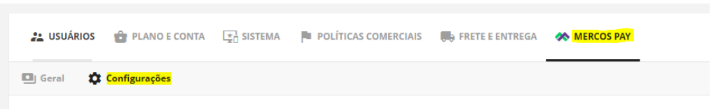 2. Clique em "Mercos Pay" e depois, "Configurações".