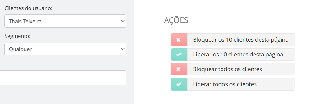 Se, ao cadastrar um usuário, você definiu que o acesso dele aos clientes será limitado, é necessário indicar exatamente quais clientes farão parte da carteira desse vendedor. Nesse processo, você poderá atribuir novos clientes ou transferir a carteira de outro usuário que não faz mais parte da sua equipe.