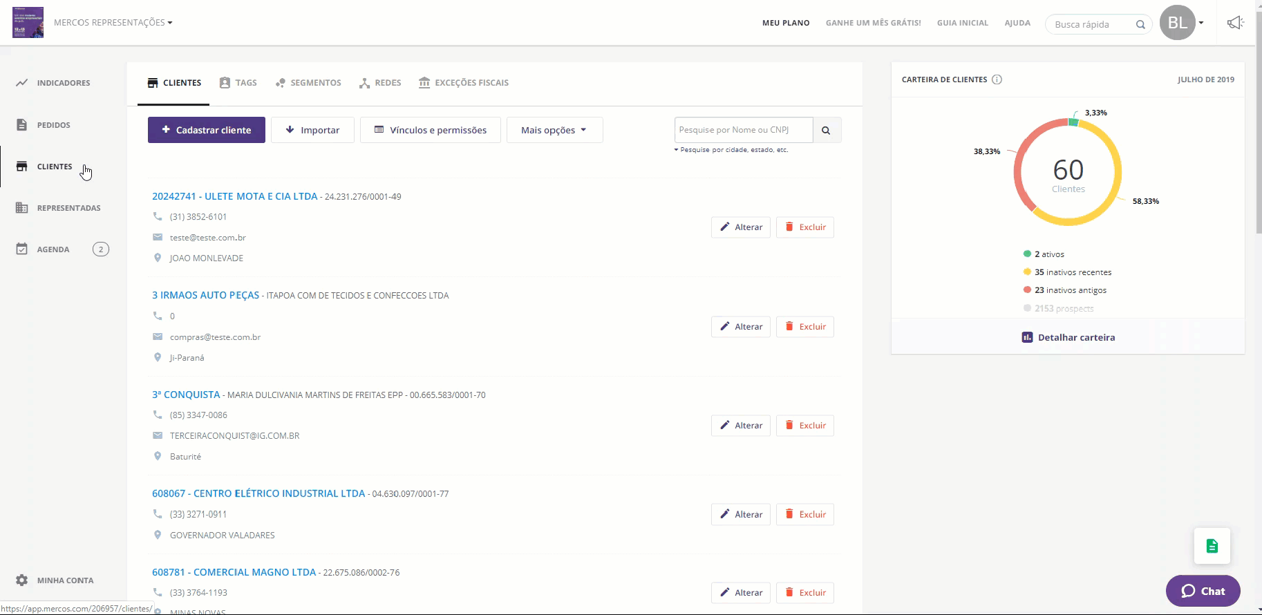 3. Em “Filtrar Clientes”, busque pelo nome, CNPJ ou aplique um filtro para buscar um cliente.