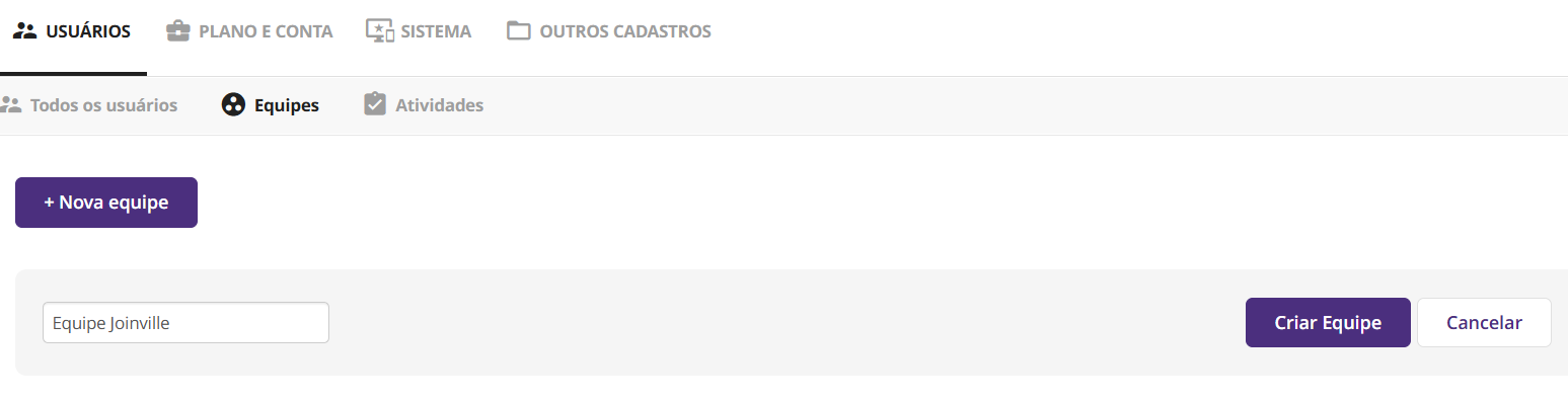 Agora que você criou a sua equipe no sistema, insira os usuários pertencentes a ela e o responsável.