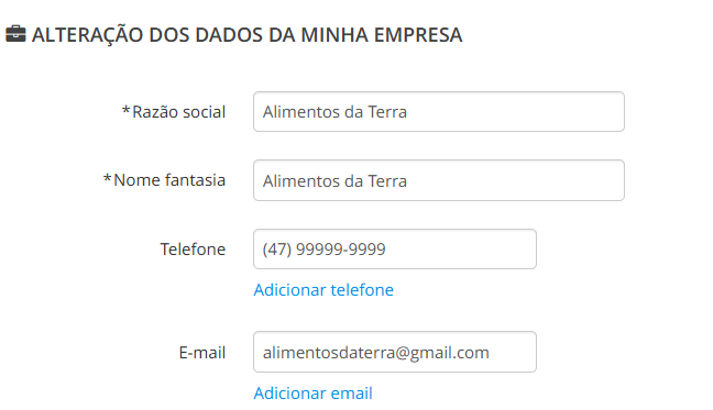Nesta mesma página, você encontra um painel com as informações da sua empresa, basta preencher ou alterar como deseja.
