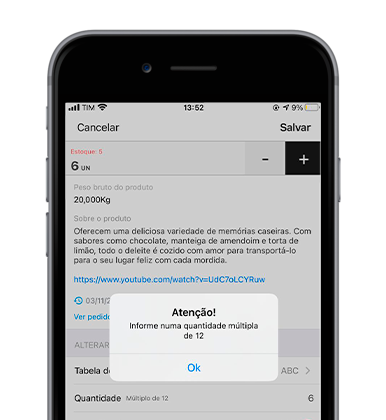 Em muitos negócios, o produto é apresentado de forma unitária, mas a venda acontece apenas em caixas fechadas. Ao definir o múltiplo de vendas, você garante que o pedido seja feito sempre na quantidade correta, evitando erros e problemas depois da venda.