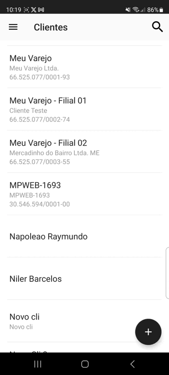 2. No menu principal, toque em “Clientes”;