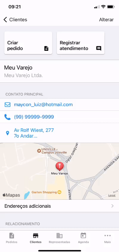 3. Selecione o cliente desejado, role a tela para baixo até a seção “Relacionamento”;