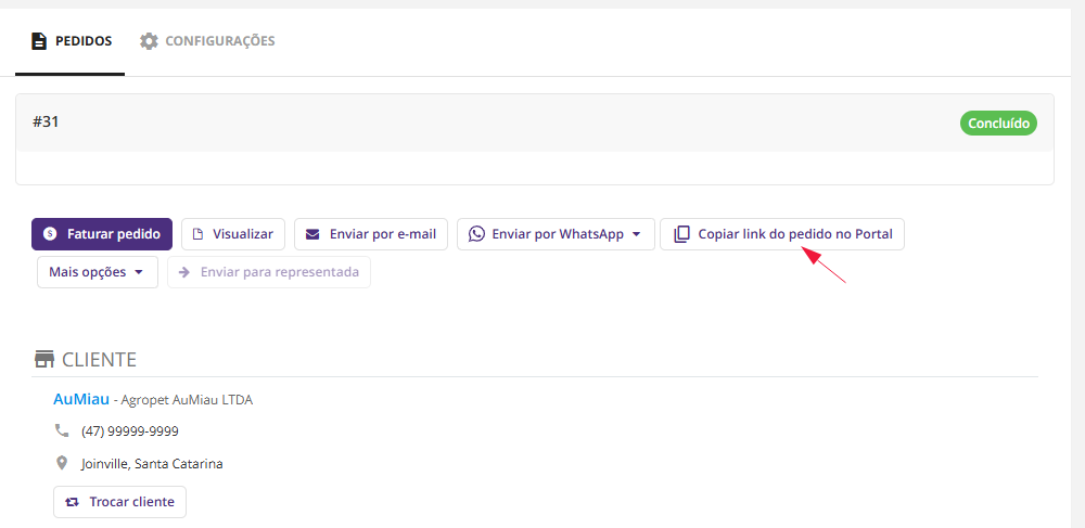 Pronto! Agora o cliente terá acesso aos detalhes do pedido sempre que quiser, direto no portal.