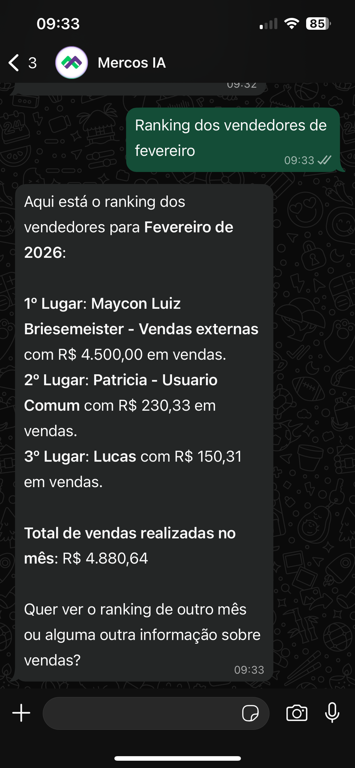 Pronto, você já consegue conversar com a Mercos IA através do seu WhatsApp