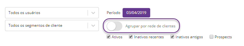 Os relatórios positivação, situação da carteira e curva ABC de clientes, permitem que a análise dos clientes seja realizada pela rede de clientes. Para isso, basta marcar a opção “Agrupar por rede de clientes”.