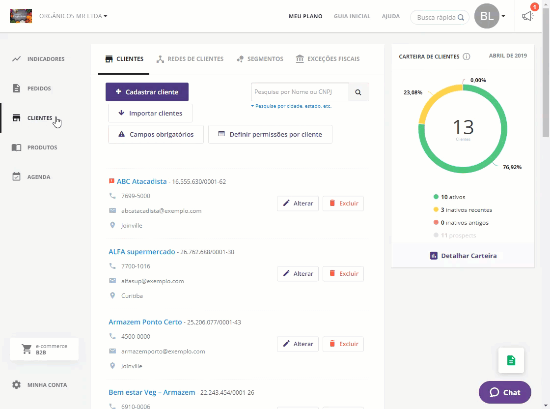 1. Na aba “Clientes”, identifique o cadastro que deseja;