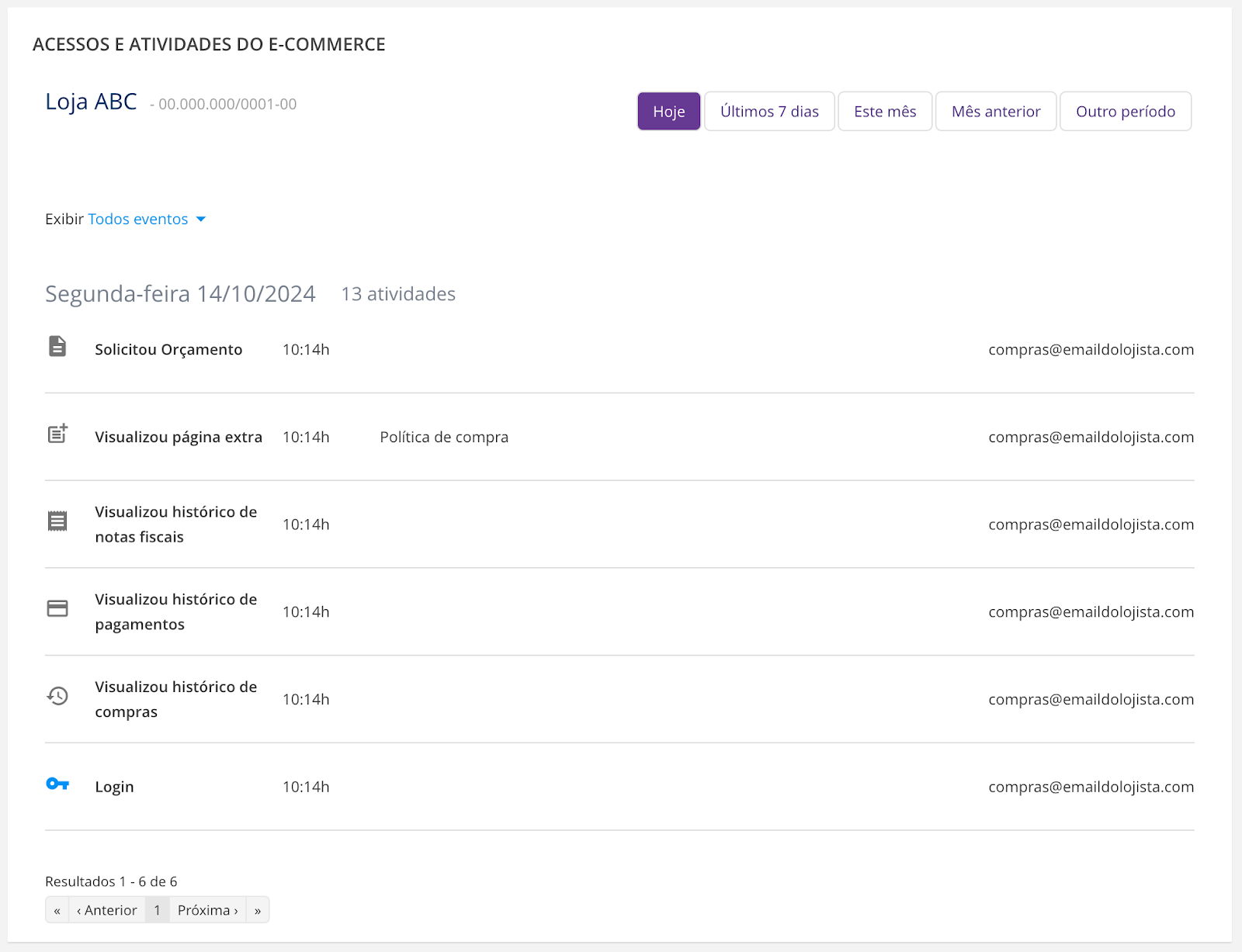 Com ele, é possível visualizar quais clientes acessaram o portal e as ações que realizaram durante a sessão. Essas informações ajudam você a otimizar a gestão e acompanhar de perto o engajamento dos seus clientes no seu site.
