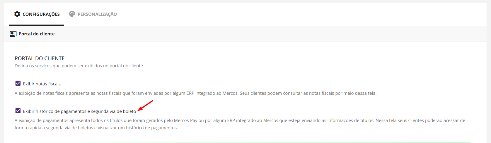 Para clientes que possuem o Mercos Pay ativo, os dados de segunda via ficam disponíveis automaticamente no Portal. Você só precisa habilitar a exibição da tela de pagamentos no Portal do Cliente. O processo é simples e as instruções estão logo abaixo.
