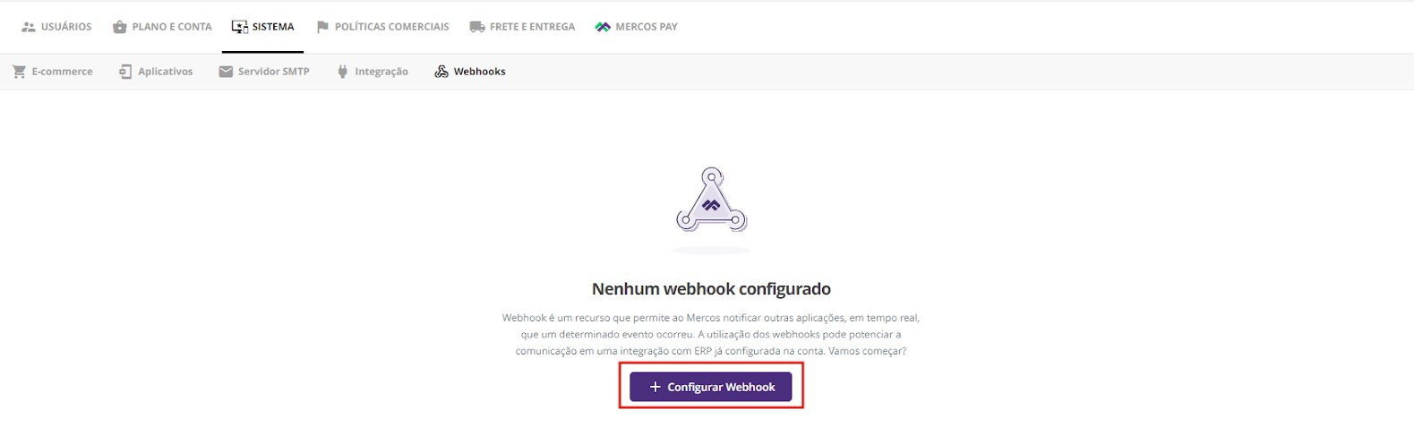 2. Siga para a aba, “Sistema”, e depois, “Webhooks”;